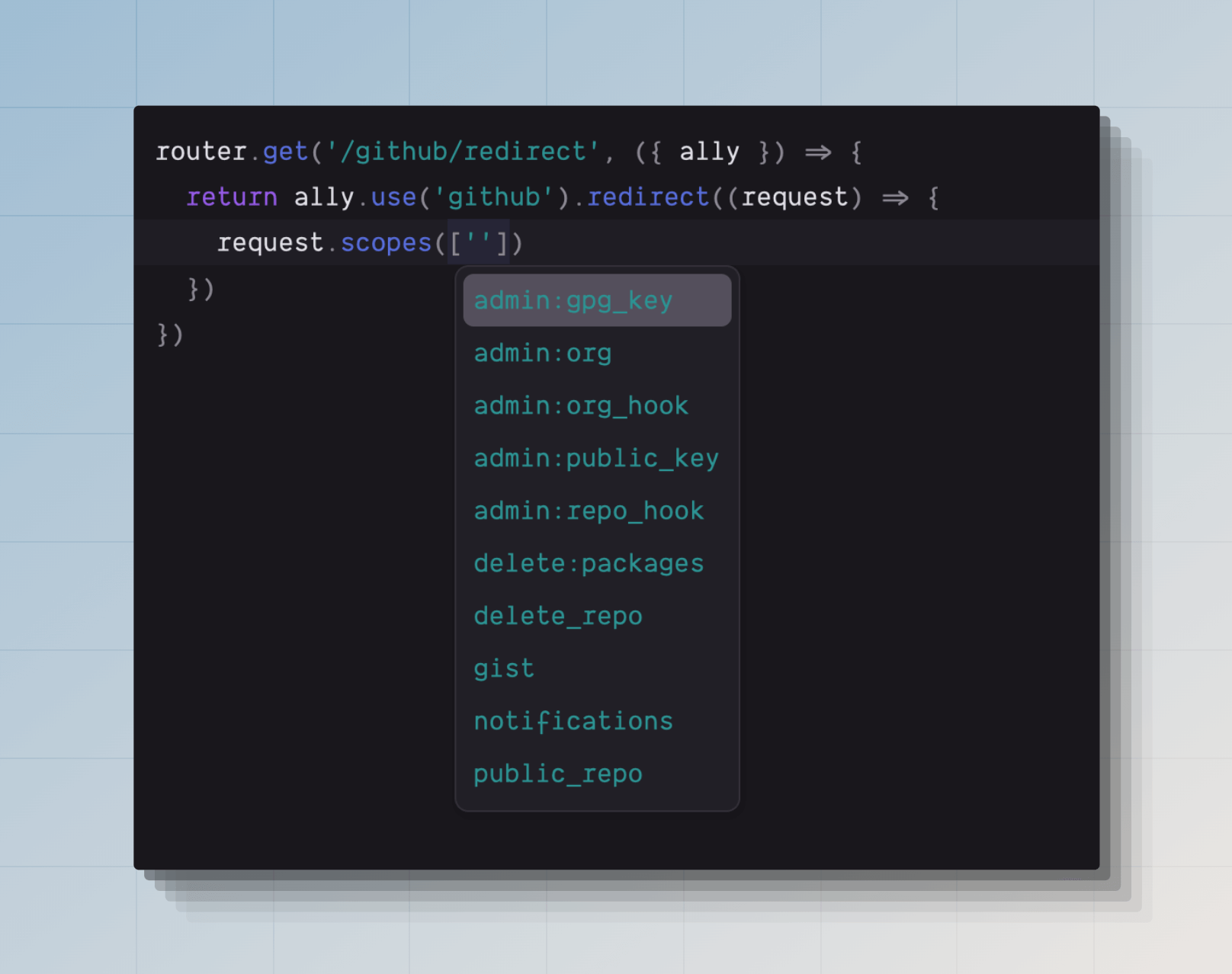 Thanks to TypeScript, you will get autocomplete suggestions for all the available scopes.